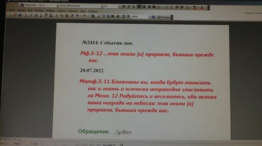 №2414. События дняМф.5-12 ...так гнали [и] пророков, бывших прежде вас.20.07.2022.