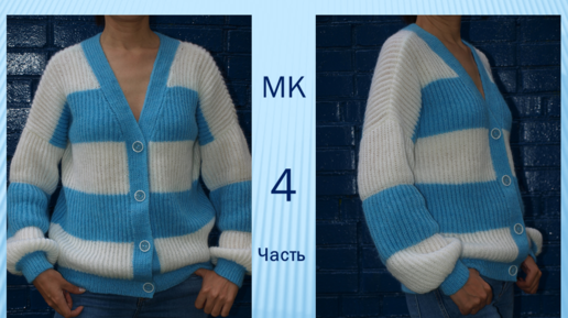 Кофта (кардиган) спицами с V-образным вырезом горловины. Английская резинка. МК 4. Рукав, сборка.