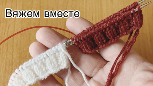 Вяжем одновременно два носка на спицах с леской. Второй способ.