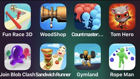 Fun Race 3D, WoodShop, Countmaster, Tom Hero, Join Blob Clash, Sandwich Runner, Gymland, Rope Man