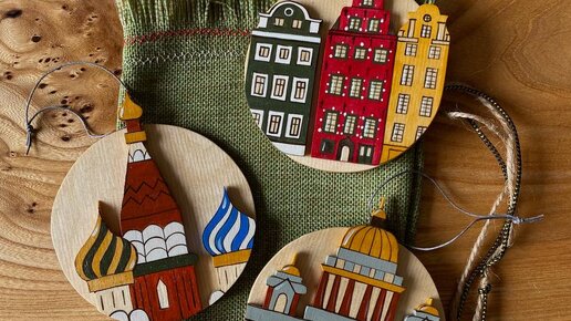 Роспись деревянной ёлочной игрушки "Дома Стокгольма"