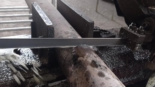Ленточная пила в работе. Режем сталь 45.