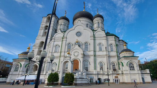 Встретил главный храм Воронежа - Благовещенский собор. Показываю, как он выглядит, чем торгуют около него. Интересуюсь товаром и ценами