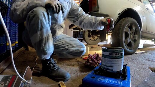 Обработка днища Нивы пушечным салом