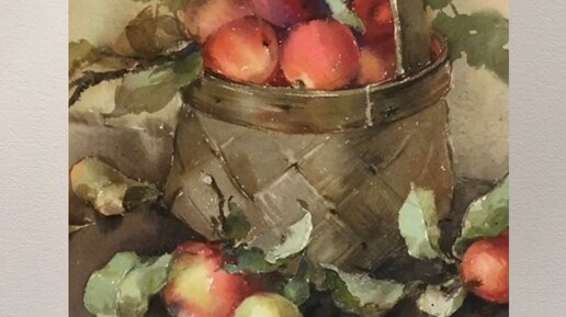Корзина яблок. Автор Марина Ласаева. #акварель #акварельнаятехника #акварельнаяживопись