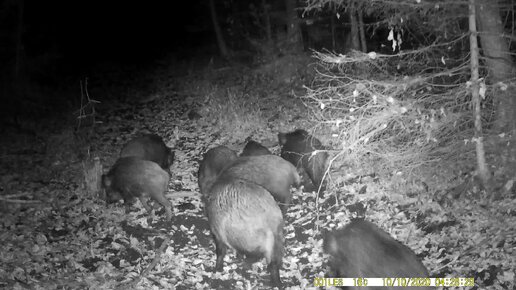 Кабанье стадо на пересохшей реке