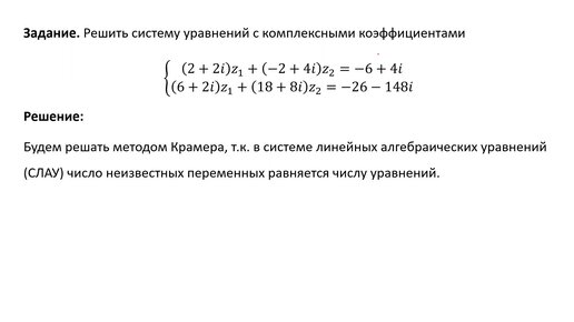 Решение системы уравнений с комплексными коэффициентами (РЗ 1.1)