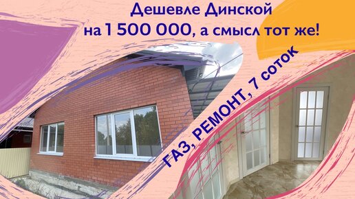 Дом с ремонтом и ГАЗом дешевле чем в ст.Динской на 1 500 000 рублей, а смысл тот же. Переезд в Краснодар.