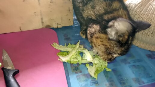 Кошка Кора ест не только грибы и сливы. Капусту очень уважает