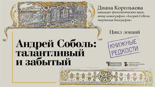 Андрей Соболь: талантливый и забытый (лекция к. фил. н. Дианы Корольковой из цикла «Книжные редкости»).