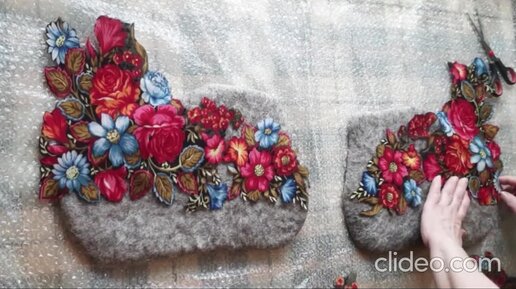 Часть 2. Валяние ботиков с павловопосадским платком.
