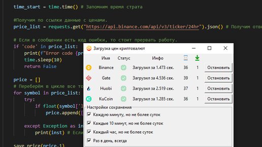 Рассчитываем изменение цены за 24 часа и храним историю изменения цен. Python