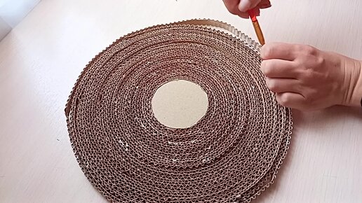 На глаза попался кусочек гофрированного картона и я сразу придумала, как применить его на кухне. Воспользовалась очень интересной техникой