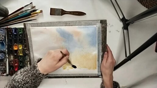 "Зима" Процесс выполнения акварельной работы Кабаевой Ольги. Акварельная живопись. Быстро и лаконично!
