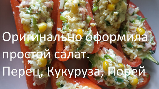 Оригинально оформила простой салат. // Перец, Кукуруза, Порей
