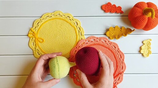 Оформляю вязаное лукошко. Крепкие ручки. Овощи крючком