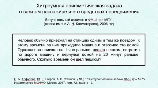 Хитроумная арифметическая задача о важном пассажире и его средствах передвижения