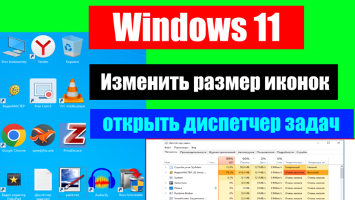 Как изменить размер значков на рабочем столе в Windows 11/10. Открыть диспетчер задач в Windows 11.