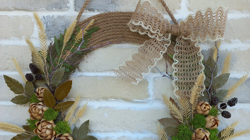 Далее: Композиция-панно с осенним настроением из сухоцветов, коры, семян и мха.