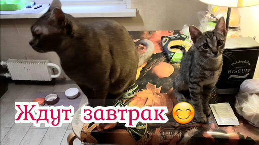 Мое утро с четырьмя кошками😻