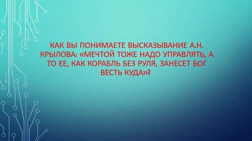 ИС. «Мечтой тоже надо управлять, а то ее, как корабль без руля, занесет бог весть куда».