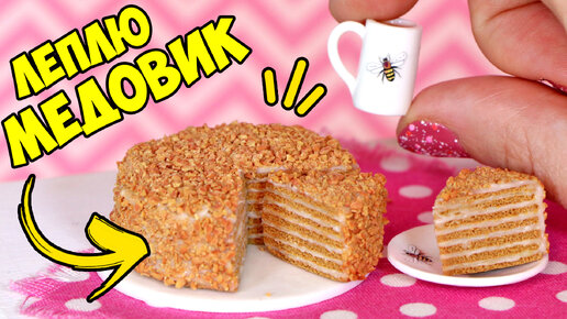 Леплю МИНИ ТОРТ МЕДОВИК для кукол! Как слепить торт из полимерной глины!