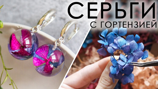 Серьги из эпоксидной смолы с настоящей гортензией! Для новичков и не только.