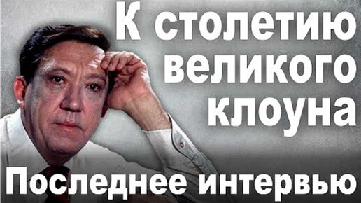 К столетию великого клоуна. Последнее интервью Юрия Никулина, народного артиста СССР