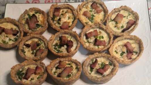 Киш Лорен в форме тарталеток с цветной капустой и беконом, отличный перекус