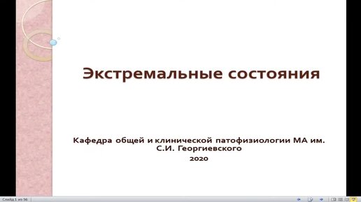 17:30 №1 Патофизиология экстремальных состояний Ординатура