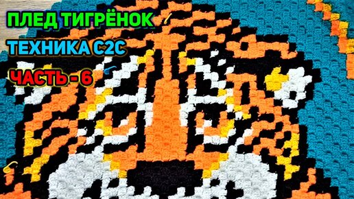 Мк вязаный детский плед Тигрёнок часть 6 техника С2С