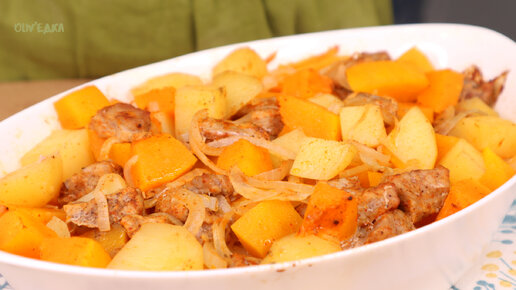 Готовлю тыкву с мясом на ужин в духовке: просто всё смешиваю и запекаю. Минимум времени на подготовку