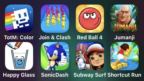 TotM Color, Join Clash, Red Ball 4, Jumanji, Happy Glass, Sonic Dash, Subway Surf, Shortcut Run