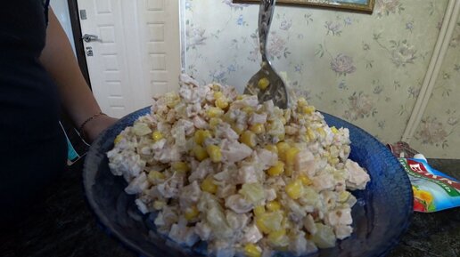Салат с копченой курицей и грецким орехом