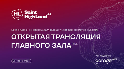 Saint HighLoad++: прямой эфир открытого трека конференции по высоким нагрузкам. День 2 (23.09.2022)