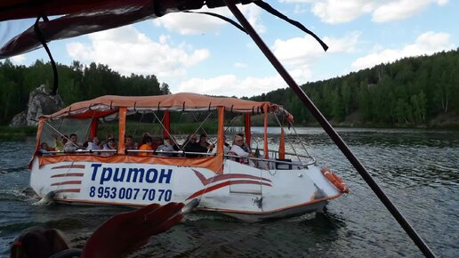 Катер проходит по Исети в Каменске-Уральском