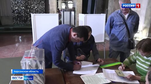В Херсоне местные жители выстраиваются в очереди, чтобы проголосовать на референдуме