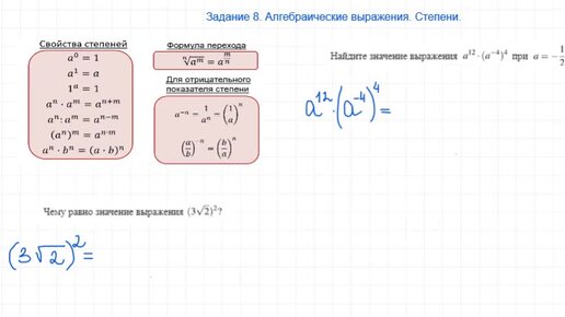 Свойства степеней в задании 8 с комментариями.