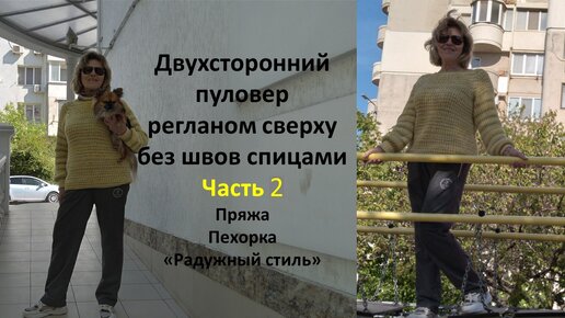 Двухсторонний базовый пуловер регланом сверху без швов спицами пряжа Пехорка Радужный стиль ЧАСТЬ 2