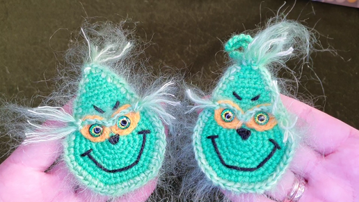 Похититель Рождества Гринч ёлочная игрушка, брелок, магнитик, брошь . Бесплатный МК. Вяжем крючком.