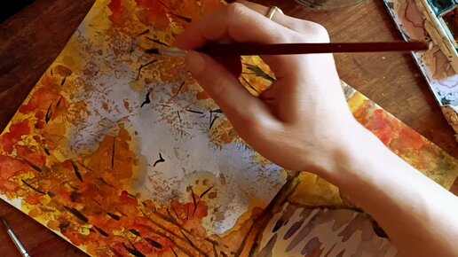 Акварель.Рисование.Осенний мотив.В парке.Пейзаж.Творчество.Живопись.