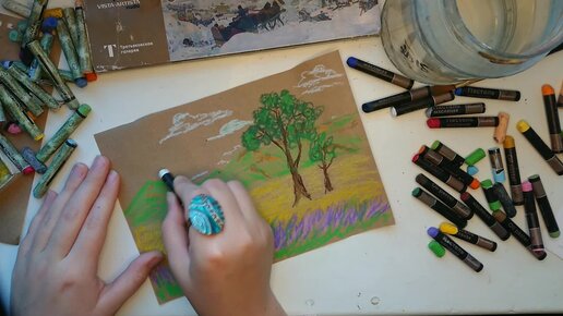 Пейзаж масляной пастелью нарисует даже ребёнок