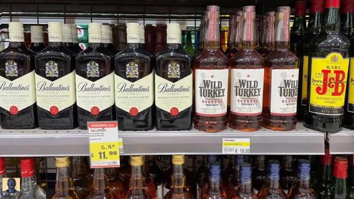 Цены на виски и другой алкоголь в простом сетевом магазине на Кипре