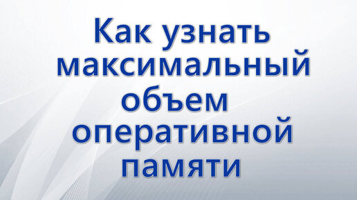 Как узнать максимальный объем оперативной памяти