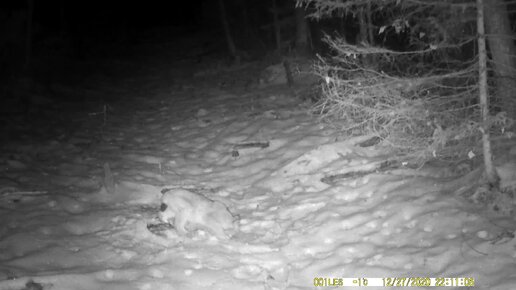 Рыси и лиса в зимнем лесу