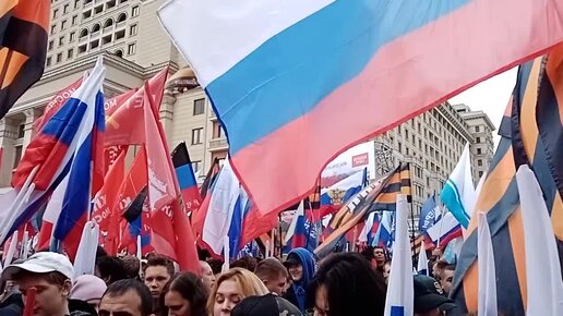 Флаги над Манежной площадью на митинге 23.09.2022 "Своих не бросаем"