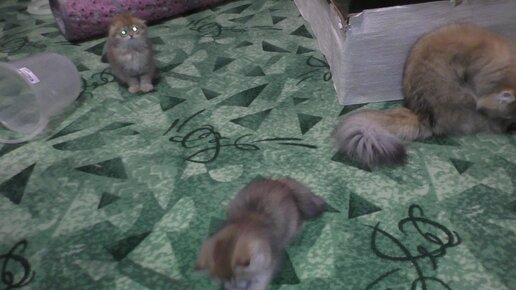 Маленькие котята играют с игрушкой удочкой