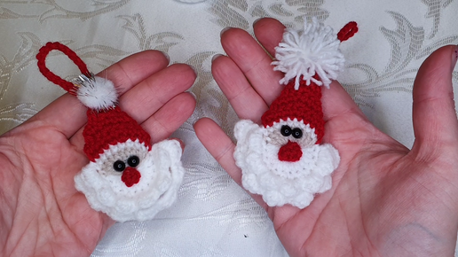 Ёлочная игрушка, брелок, магнитик Дед Мороз вяжем крючком. Дизайнерская ёлка. Бесплатный МК.