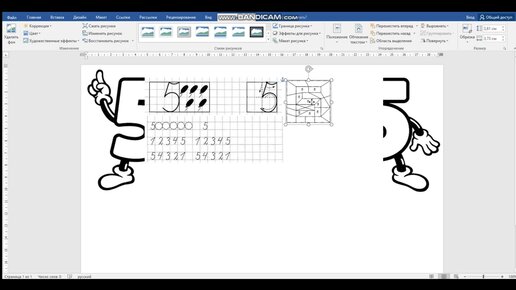 Процесс создания карточки для учеников 1 класса. Число 5 и цифра 5
