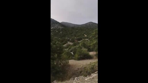 Можжевеловая роща сентябрьским вечером. Красивые виды на горы и бухту. Начинается дождь.